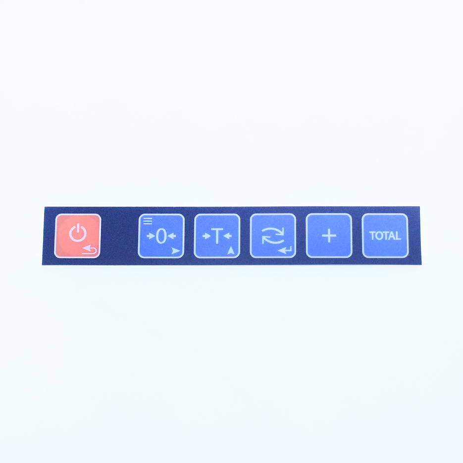 Etiqueta autoadhesiva de PVC. Teclas: POWER/MENU, CERO, TARA, SELECT, +, TOTAL.