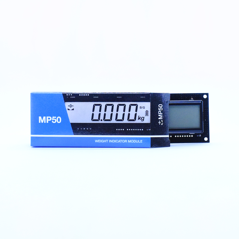 El módulo MP50 está orientado a la construcción de básculas industriales de baja y mediana capacidad, básculas para pesaje de animales, balanzas comerciales de uno ó dos display y dinamómetros. Está optimizado para bajo consumo de corriente y tiene incorporado un cargador de baterías de plomo ácido selladas (SLA) de 6V, que sumado a las opciones de manejo de energía, otorgan buena autonomía en aplicaciones portátiles. El módulo tiene incorporado un display LCD con backlight blanco que permite buena visibilidad en todas las condiciones de iluminación, en la oscuridad o a plena luz del sol. Soporta conexión de celdas de carga a 4 hilos (sin sensado remoto) y dispone de protecciones EMI/ESD. Rango de alimentación de 5 a 15VCC, cargador Fuente switching de 9VCC 0.5A.