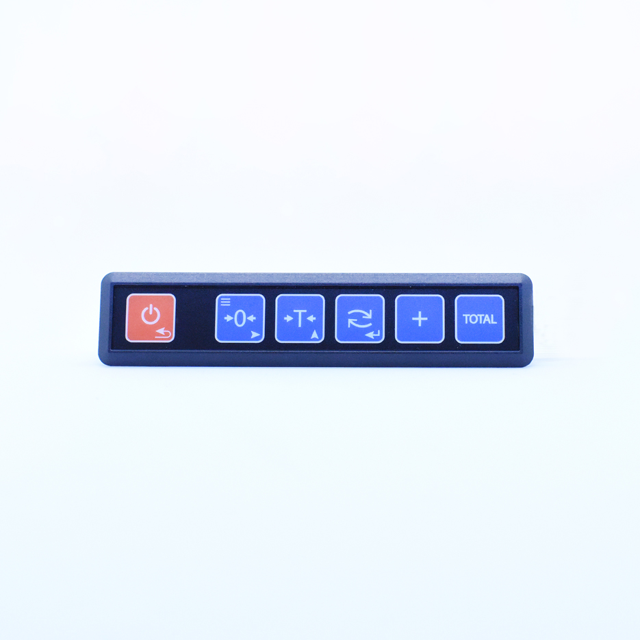Teclado de 6 pulsadores, incluye bastidor plástico para montaje en gabinete y cable de interconexion a indicador de peso. Teclas: POWER/MENU, CERO, TARA, SELECT, +, TOTAL.