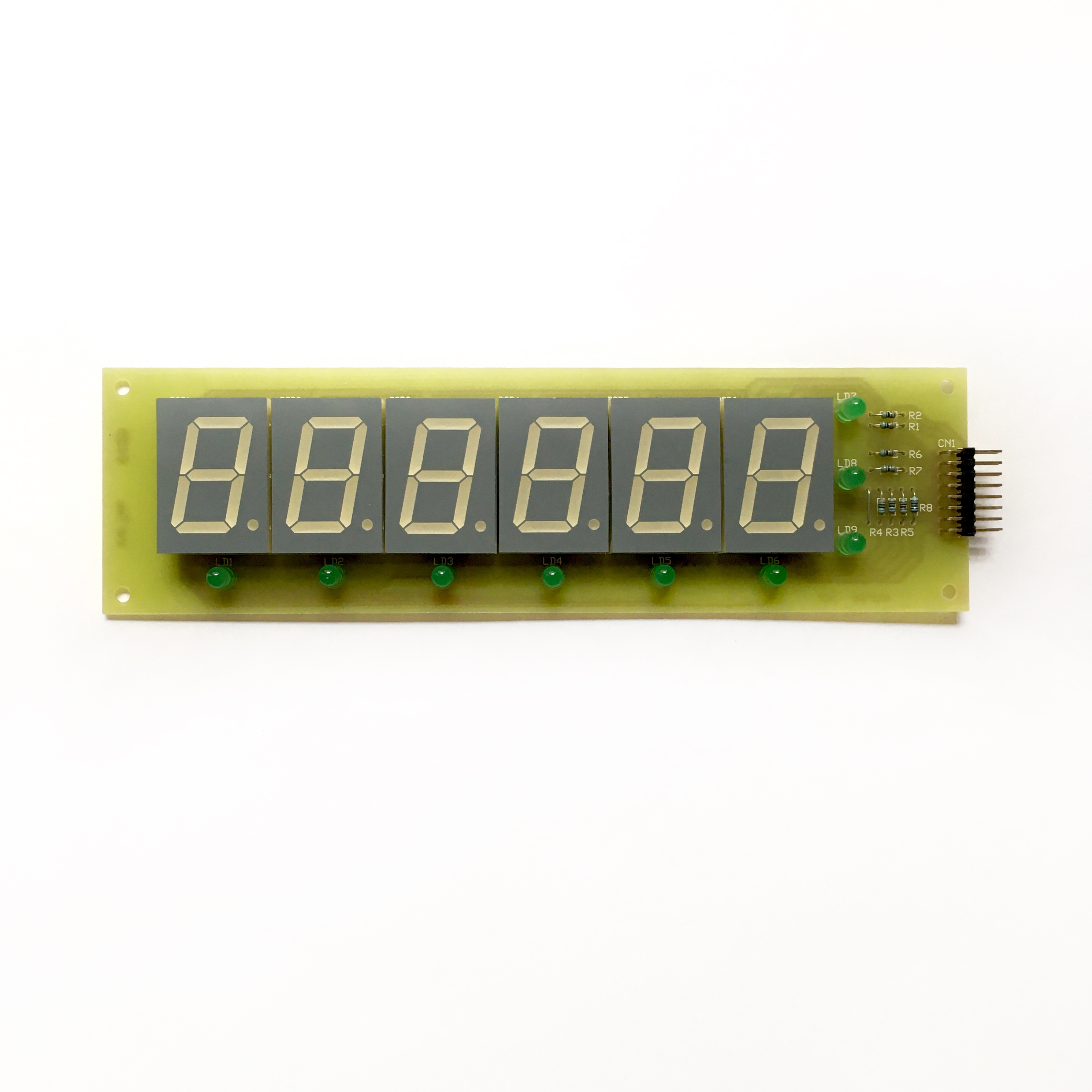 Display indicador de 6 dígitos LED 7-Segmentos de una pulgadas de altura mas nueve indicadores LED de 5mm de diámetro, ambos de color verde.