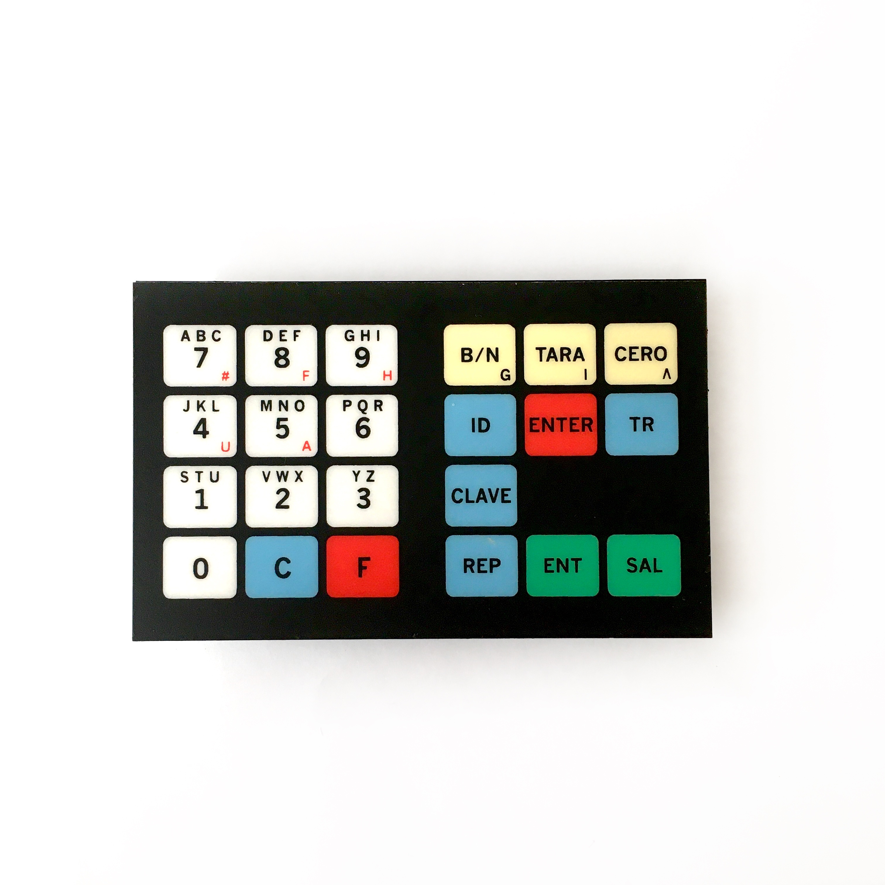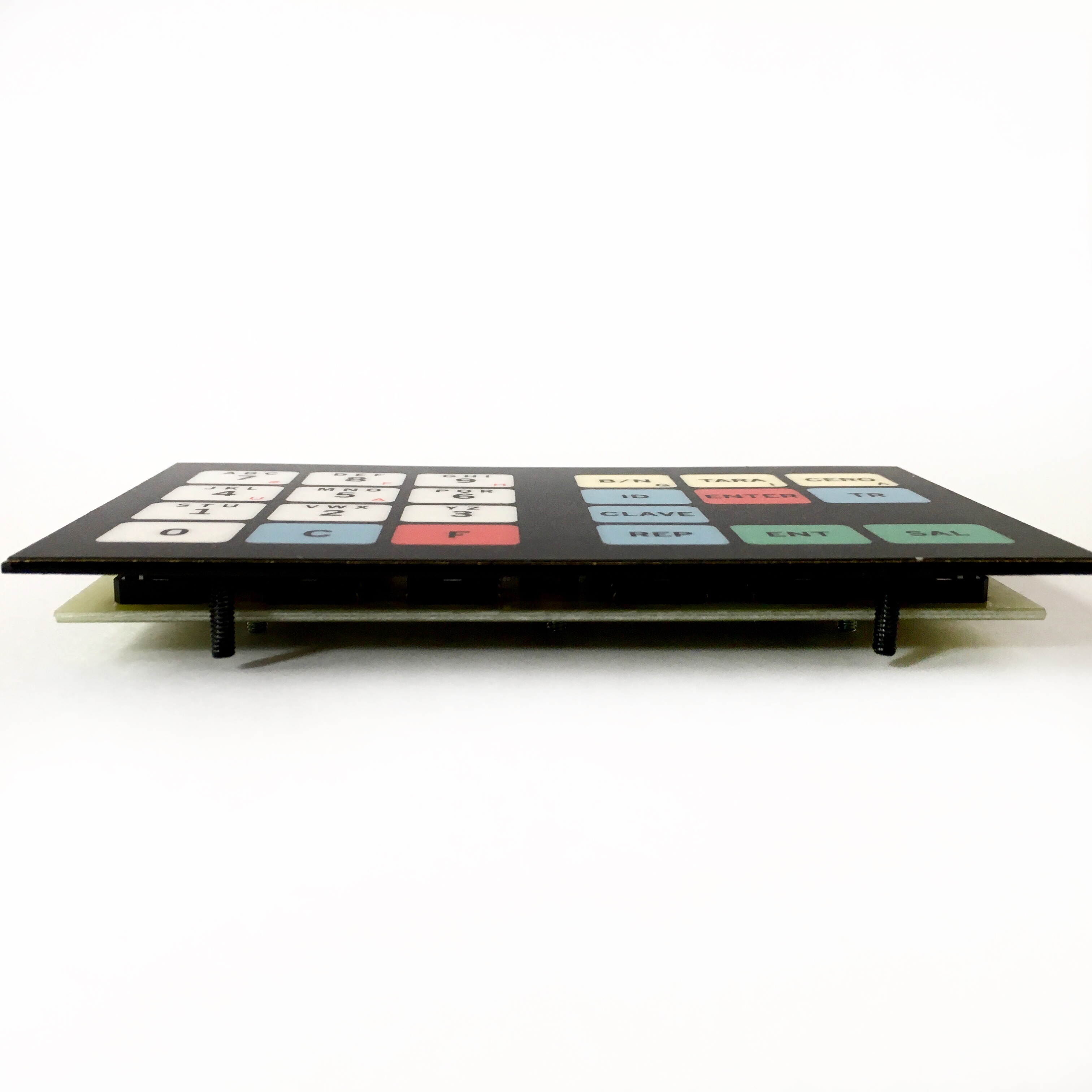 Teclado de 22 pulsadores, incluye bastidor metálico para montaje en gabinete, versión vehículos en tránsito.